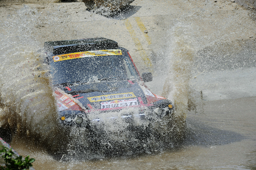 另外在发动机舱内,也要做好节气阀的防水措施。由于比赛中高速过水会将水推起,漫过机舱,节气阀的位置就极容易进水了。机舱内电路的防水也很重要,现在车辆电路基本上都有防水措施。韩魏指出,赛车这方面的防水工作主要是点火线圈的防水,在这个方面,每个改装师所使用的技巧可以说八仙过海各显神通,总结一下,无非就是使用某种合适的材料对于点火线圈位置进行包裹。在比赛中,由于需要高速过水,水漫过机舱盖的情况很常见,过水最容易对车辆造成的损害除了发动机以外,还有水箱、叶轮以及电池,有时甚至连车前盖也会被水顶起,所以说赛车手过水时都有自己独特的处理方式